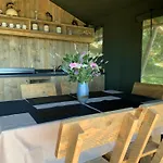Deze 1-slaapkamer Safari Tent Lodges With A Beautiful View At Lot Sous Toile heeft een eethoek buiten met koffie- en theevoorzieningen. De keuken heeft ook een koelkast, een kookplaat en keukengerei. Deze luxe tent bevindt zich ook op 85 km van de luchthaven Brive-Vallée de la Dordogne. Deze woning heeft een terras om op te ontspannen na een drukke dag, samen met een verwarmd zwembad.